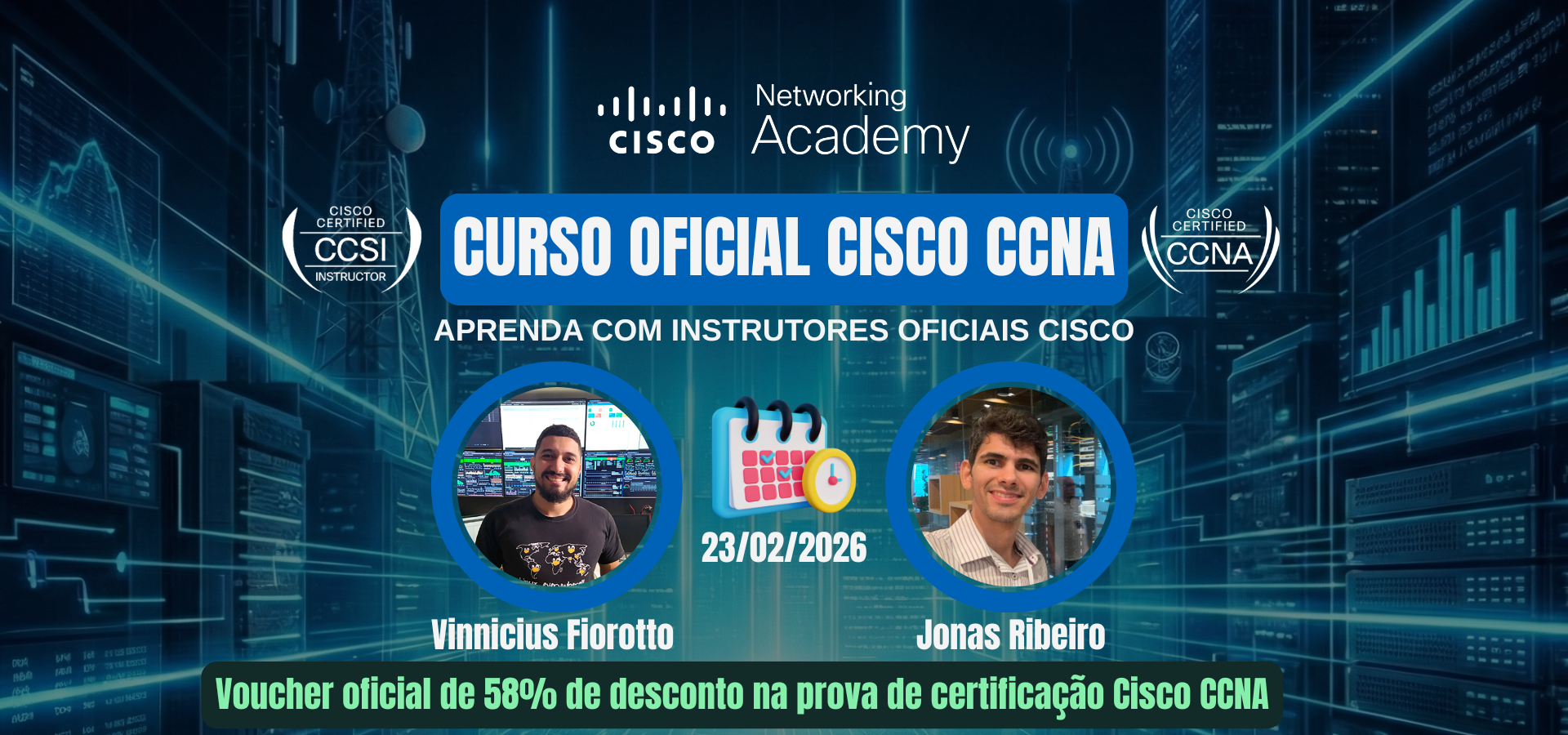 Sim. Ao concluir a trilha oficial do Cisco CCNA pela Networking Academy, o aluno se torna elegível a um voucher oficial de até 58% de desconto na prova de certificação, conforme as regras da Cisco.